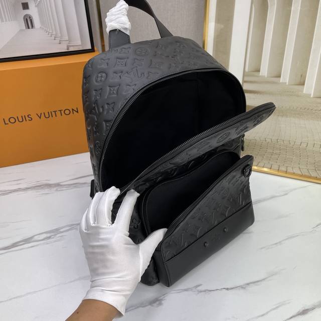 Backpack 46109, made of full-grain cowhide with embossed design. Top-quality original, same style as in boutiques. Porte-Documents Voyage, a unique and charming accessory. Smooth leather trim and spacious interior, a perfect combination of luxury and practicality. Top-quality original, five-metal finish. Dimensions: 29X38X18--- DDD