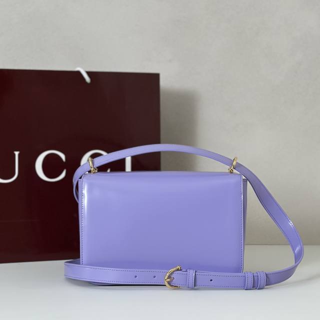 Boutique quality, top-tier original item, real product photos! Style number 846705, light purple glossy leather, dimensions: width 22.5 x height 14 x side width 8 cm.