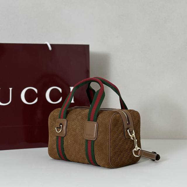 Boutique quality, top-tier original item, real product photos! Style number 859975 Brown suede leather with embossed G, dimensions: Width 20cm x Height 13cm x Side width 13cm. (DDD)