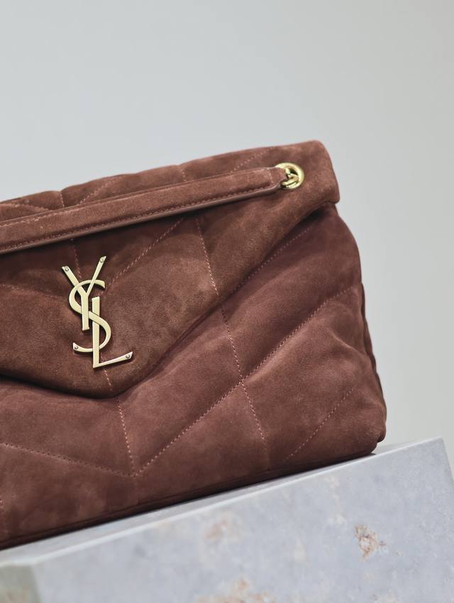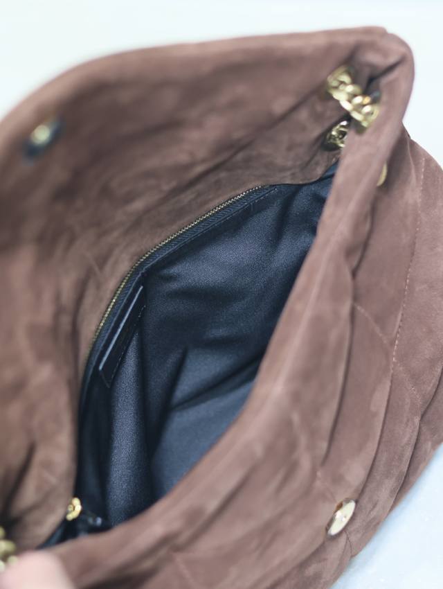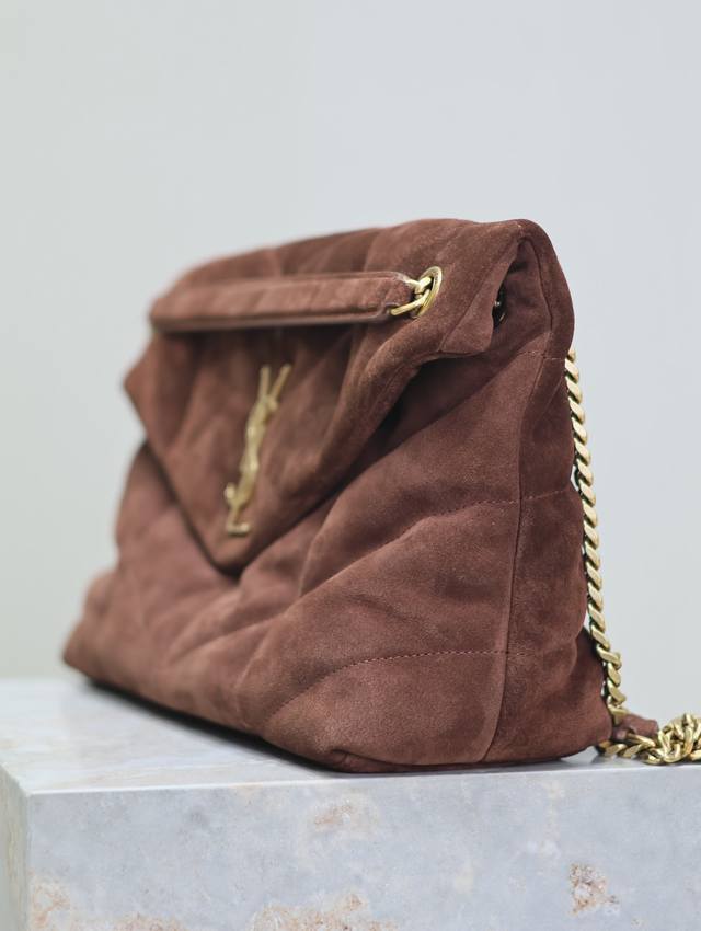 Brown frosted Loulou Puffer with gold buckle_35cm