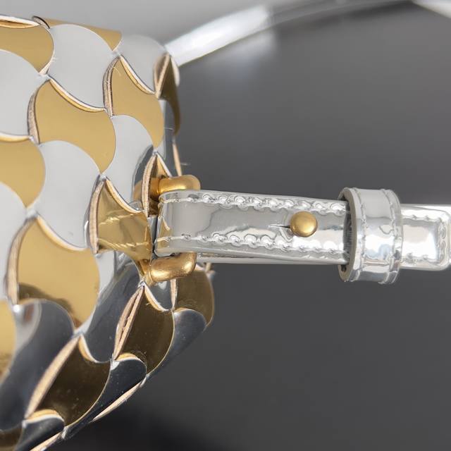 Bv 24 The new early spring mini Hop has finally arrived! Fish scale color blocking DDD It's so small yet incredibly exquisite and high-quality; the calfskin leather is truly elegant!!! Its shoulder strap is detachable, so you can carry it by hand or crossbody, making it very practical! It even fits a 15 Pro Max phone, so you don't have to worry about it not fitting. DDD Style Number: 777572 DDD Size: 25.5*14.5*11Cm DDD Color: Scale Gold and Silver DDD