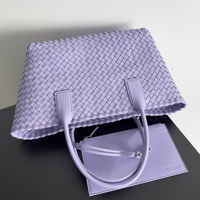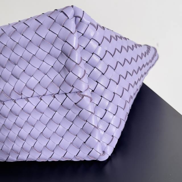 Bv's iconic Cabat bag returns in medium size 32. One of the most popular bag series, the Cabat, is now back in a new style with special elements. The seamless double-woven, unlined construction is soft, foldable, and retains its shape when empty. Style number: 608810. Dimensions: 48*15*25cm, bottom 32. Color: Wisteria.