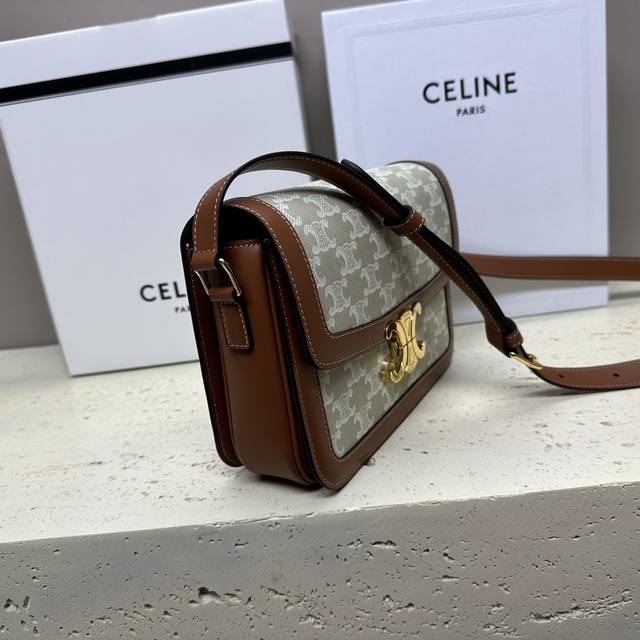 Ce Triomphe Medium Logo Print PVC and Calfskin Shoulder Bag