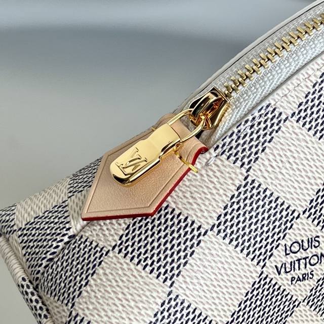 Chip Version Large Makeup Bag N47353 White Check This large makeup bag is crafted from classic and stylish Monogram canvas, exuding luxury. Shiny gold-tone metal details and a cotton lining add to its elegant appeal. - Special coated canvas - Cowhide trim - Shiny gold-tone metal hardware - Wide zip closure - 2 flat interior pockets - Lipstick compartment - Size 22*6*15 DDD
