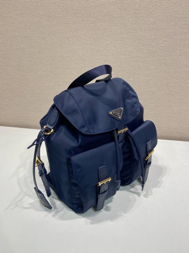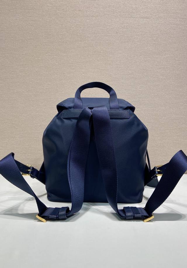 This practical and innovative backpack is made of imported nylon fabric, with adjustable shoulder straps and woven handles, a detachable Re-Edition leather key ring, a front snap-on flap pocket, an enamel triangular metal logo on the flap, drawstring closure, logo-printed Re-Nylon lining, and two interior pockets, one of which has a zipper. It boasts a large capacity. Classic and practical, it's another timeless bestseller