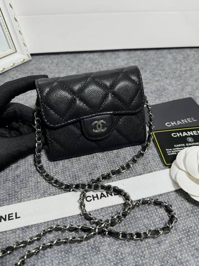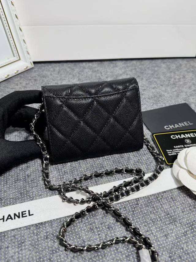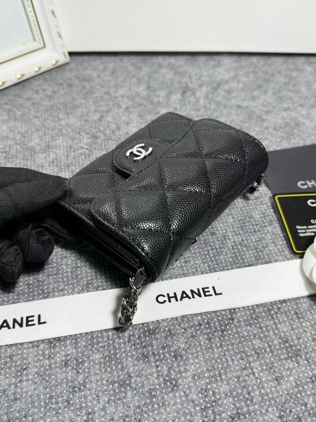 Clearance price, new arrivals in stock! Classic chain evening bag, model 81082, imported caviar-patterned texture with light-colored hardware. It features two interior compartments for ample capacity, plus a back slip pocket