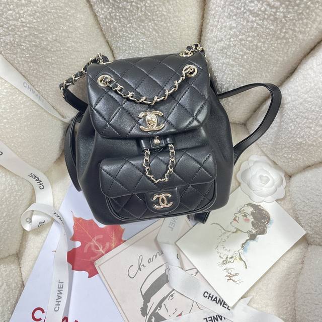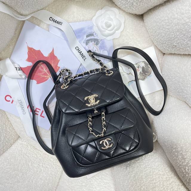 Color: Lambskin leather, new arrival, in stock! 2908 22K Duma women's backpack. Love at first sight with this calfskin leather! No worries about the white color, it's dirt-resistant! The capacity is amazing! It'll look incredibly elegant with a floral dress in summer! It's also super chic in winter. Here's the best part: visually, it's only slightly larger than a square bag, making it super compact and cute when worn, yet the capacity is impressive. It easily fits your phone, wallet, water bottle, umbrella, and other small items. The magnetic clasp at the front can hold cards, keys, and lip balm