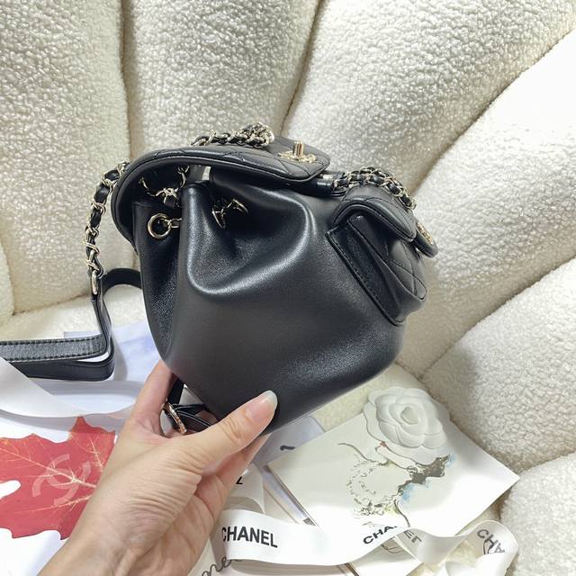 Color: Lambskin leather, new arrival, in stock! 2908 22K Duma women's backpack. Love at first sight with this calfskin leather! No worries about the white color, it's dirt-resistant! The capacity is amazing! It'll look incredibly elegant with a floral dress in summer! It's also super chic in winter. Here's the best part: visually, it's only slightly larger than a square bag, making it super compact and cute when worn, yet the capacity is impressive. It easily fits your phone, wallet, water bottle, umbrella, and other small items. The magnetic clasp at the front can hold cards, keys, and lip balm