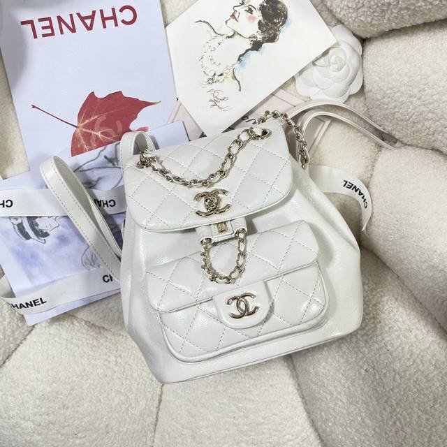 Color: White cowhide leather, new arrival, in stock! 2908 22K Duma women's backpack. Fall in love at first sight with this calfskin leather! No worries about the white color, it's dirt-resistant! The capacity is amazing! It'll look incredibly elegant with a floral dress in summer! It's also super chic in winter. Here's the best part: visually, it's only slightly larger than a square pouch, making it super compact and cute when worn, yet the capacity is surprisingly large. It easily fits your phone, wallet, water bottle, umbrella, and other small items. The magnetic clasp at the front can hold cards, keys, and lip balm