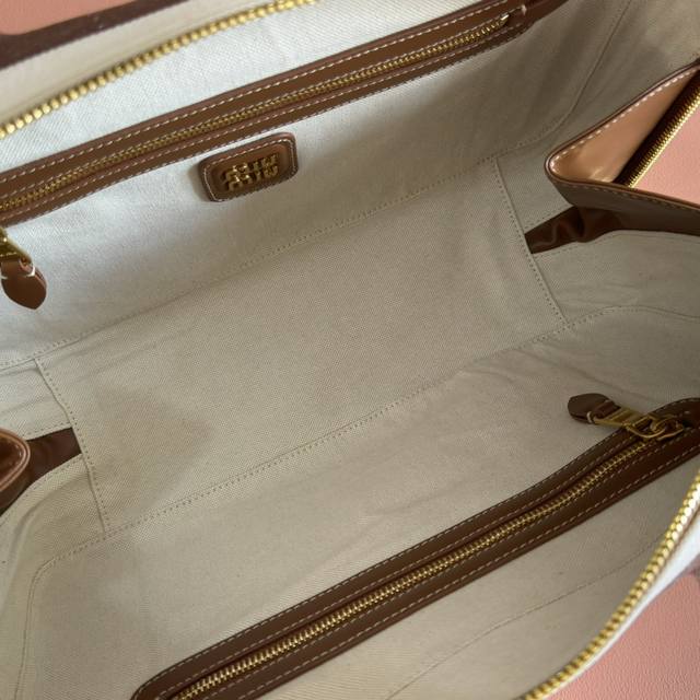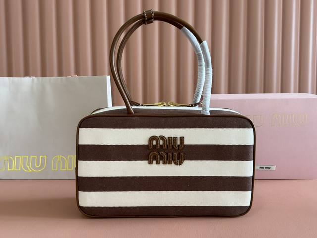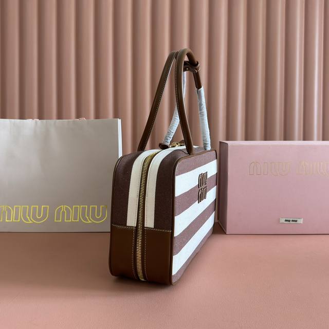 Configuration: Full counter packaging, premium hardware, genuine leather, Beau denim colorblock handbag, shoulder bag, and brown striped new briefcase. This Beau handbag is crafted from soft, smooth cowhide leather, with exceptional details like gold-plated hardware. The embossed monogram logo accentuates its classic style.