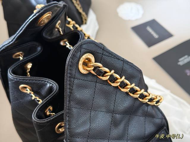 The adjustable drawstring design at the top of the bag is very practical, with two small pockets on the side, of moderate size, very fashionable when worn on the back!