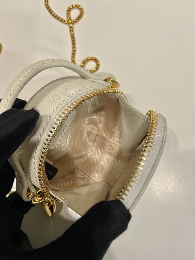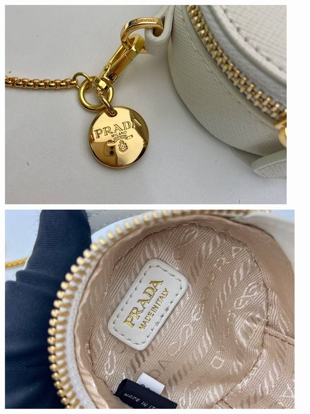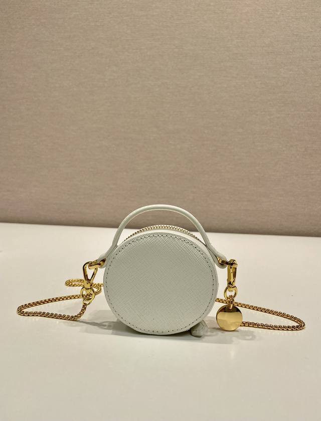 Cross-grain Mini Round Bag 1Nr023 Ddd This round mini bag showcases a modern and sophisticated silhouette, crafted from cross-grain leather and adorned with sparkling metal hardware. It features an elegant detachable chain shoulder strap. So cute! It 's incredibly eye-catching and can be both ethereal and edgy. Aren't you tempted? Ladies, grab one now! It's so beautiful and adorable! Ddd Length 8 x Height 8 x Base 3.5 cm DDD