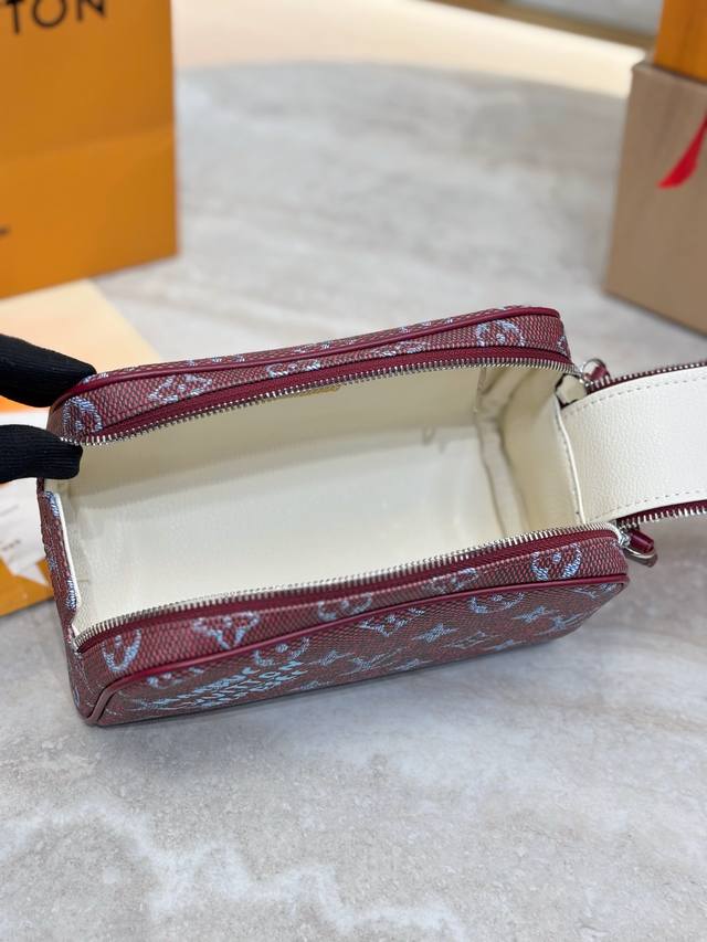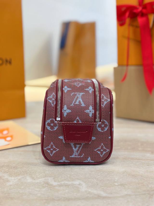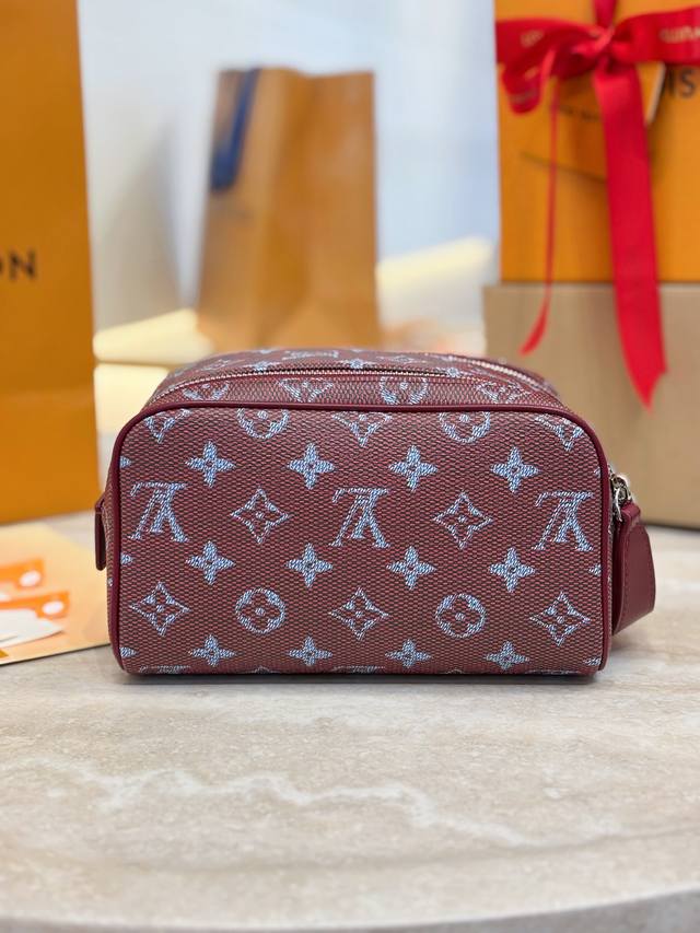 Dopp Kit Mini Toilet Bag Ddd M27158 Purple Ddd This Dopp Kit mini toilet bag is made of vibrant Monogram Heritage coated canvas with cowhide leather details. The double-zippered wide opening makes it easy to access toiletries. The washable fabric lining adds to its functionality. Size: 20X13X12Cm DDD
