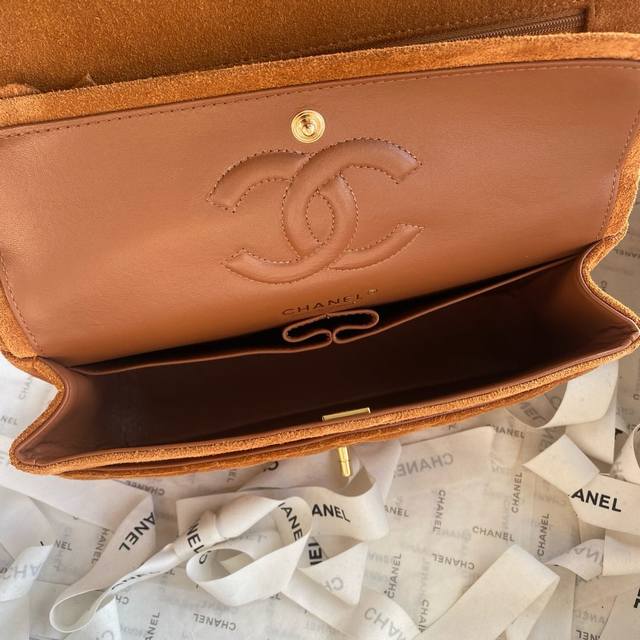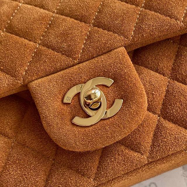 Double Eleven Sale Price - In Stock! DDD Suede Double Flap 2.55 Classic New Style, Mimiohanel New CF Hidden Style - Aren't you instantly captivated by its beauty? I love this simple style of suede bag; it's more versatile and timeless. What's special is that while most shoulder straps are leather-threaded chain, this one features a brown leather-threaded chain shoulder strap, making it more sophisticated and retro. A fashionable item! DDD Style Number: 1112 DDD Size: 25cm DDD