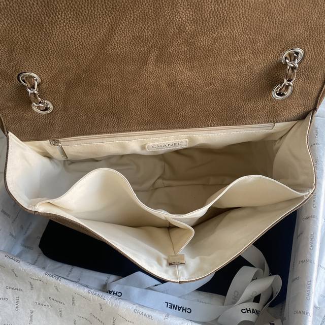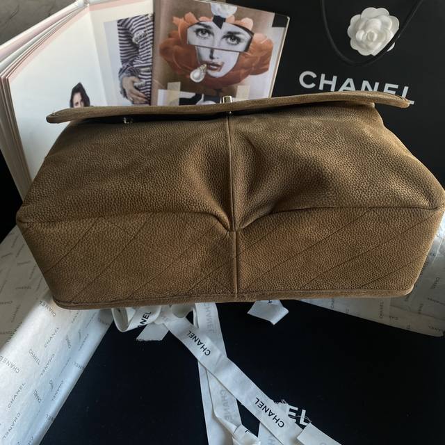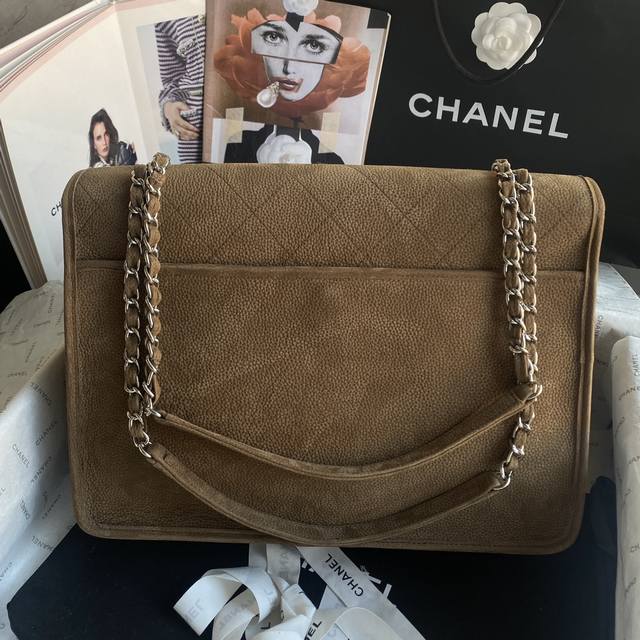 Double Eleven Sale Price with Huge Logo. Highly practical. Ohanel custom-made cowhide bag, super retro and beautiful. My absolute favorite for autumn and winter: suede Chanel. It's definitely number one in my heart because it's so unique and rare. The cocoa coffee brown double-pocket chain bag is a must-have for my girlfriends. It has all the elements I love: a large suede bag, adjustable chain, and silver buckle. Chanel has released many similar styles, but this suede brown one is the one that I love most. The leather looks like cowhide but feels like thick suede with a matte finish. The chain can be worn as a hobo bag. It's lightweight and can fit a laptop and iPad! Style Number: 15895 Size: 34X25X10 Cm