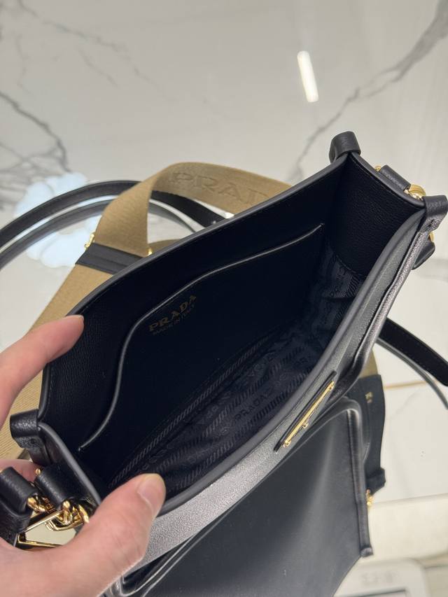 Ddd Double Shoulder Strap This leather shoulder bag features a simple design, crafted from imported calfskin, with a distinctive metal triangular logo on the front. It comes with two detachable logo webbing straps and a leather shoulder strap, allowing for easy switching between different outfits and occasions! It exudes a modern style. High-end fashion, it's a staple in everyday wear. Ddd Dimensions: Length 20cm x Height 21cm x Base 7cm Ddd Style Number: 1Bh220 DDD