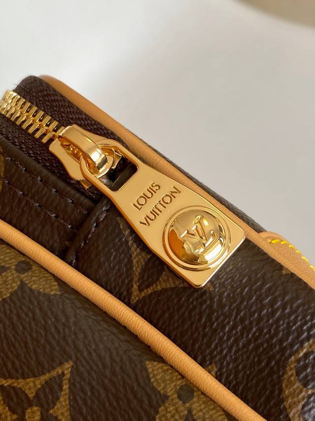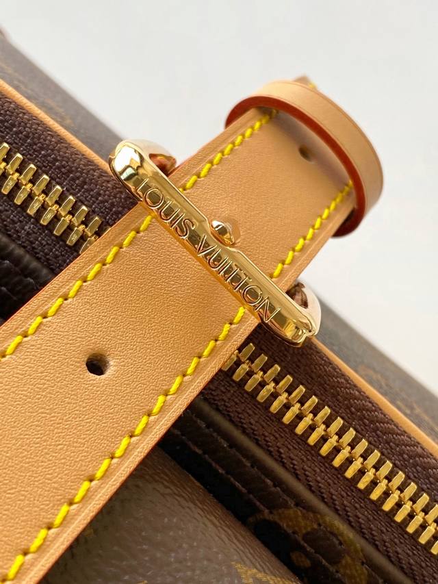 Dynamic 163 The leather has been replaced with the correct version, no new photos were taken. M14016 Monogram, M14025 Full Leather Top-Tier Original Single, Dynamic Code Nil. This stylish and compact handbag belongs to the Monogram Archive series. It features a Monogram coated canvas body with cowhide leather trim. The handbag blends vintage details with modern elegance. The corners are reinforced, and it comes with a pearl zipper recently introduced by Pharrell Williams. The detachable handle and strap offer flexibility and portability. 25.0 X 17.5 X 11.0 cm (Length X Height X Width)