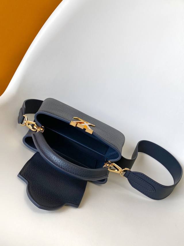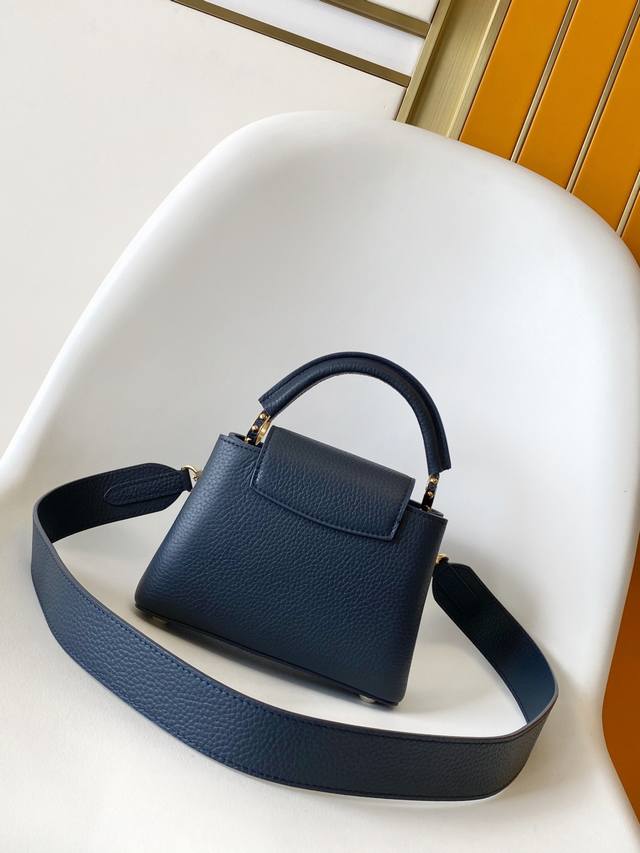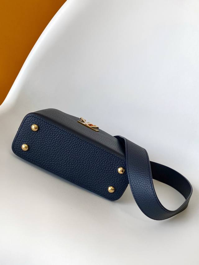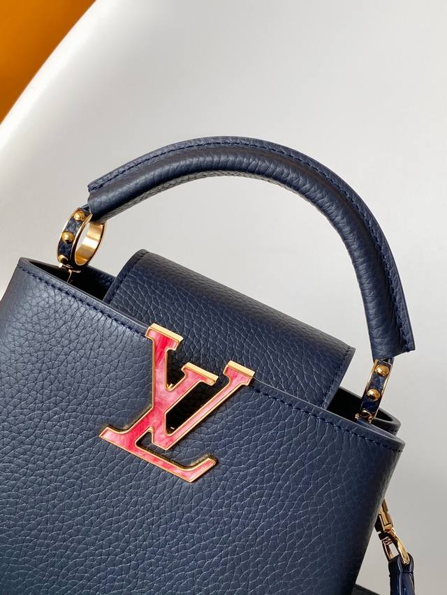 Dynamic 163 Top-quality original single-piece leather M58178 pink M21150 blue DDD This Capucines mini handbag is made of Taurillon leather and adorned with a Monogram floral "crown" on top. The pattern is hand-stitched onto the leather. Its adorable mini size and delicate decorative floral pattern are charming, while the stylish detachable wide strap and top leather handle offer multiple carrying options. 21.0 x 14.0 x 8.0 cm (Length x Height x Width) DDD