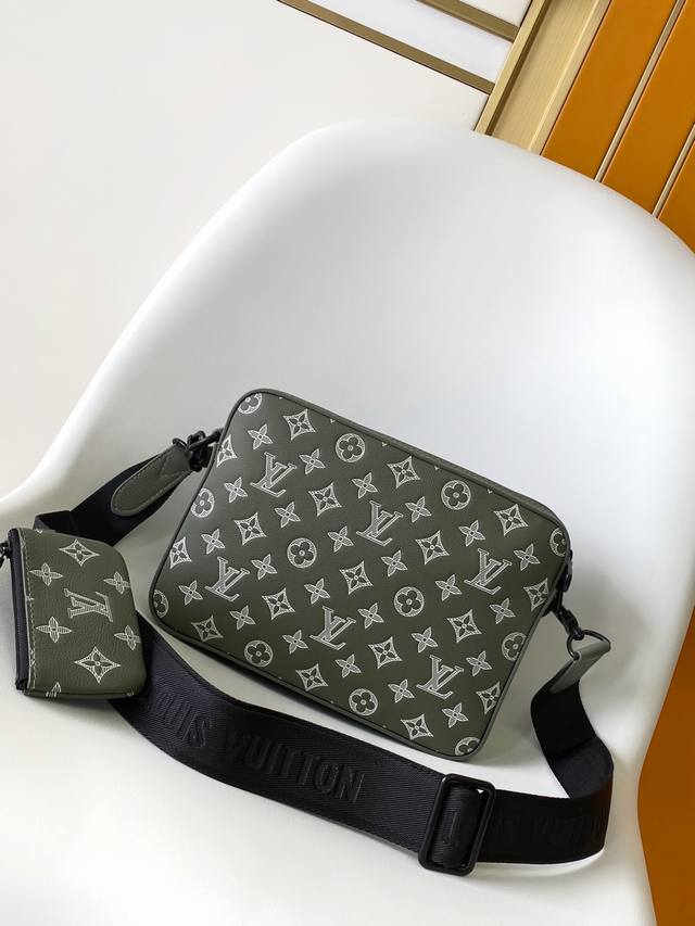 Dynamic 163 Top-Tier Original Individual Shots M12490 Green M14785 Royal Blue M46604 Blue M46602 Black M46603 Grey This Trio messenger bag is crafted from Monogram embossed cowhide leather. The zippered front pocket and the small coin purse on the shoulder strap are detachable, enhancing the functionality along with the main compartment. The detachable and adjustable jacquard fabric shoulder strap features the brand logo, providing a comfortable shoulder or crossbody carrying experience. Dimensions: 25