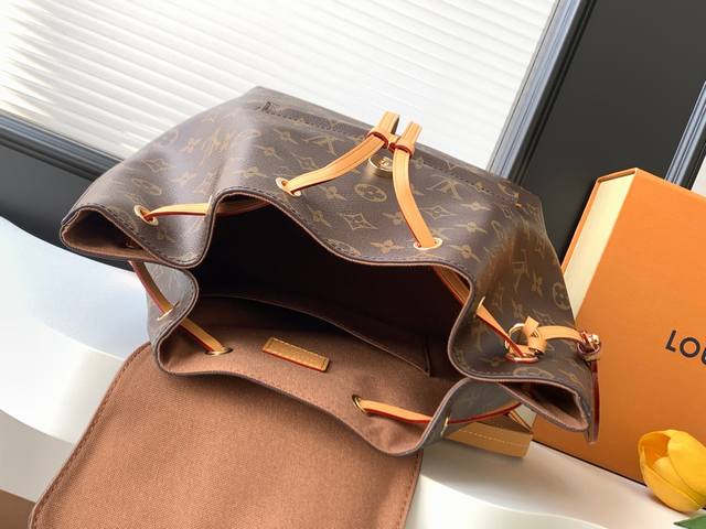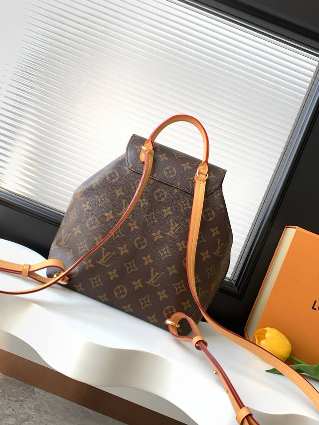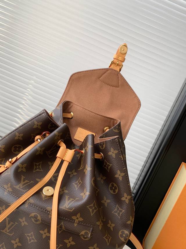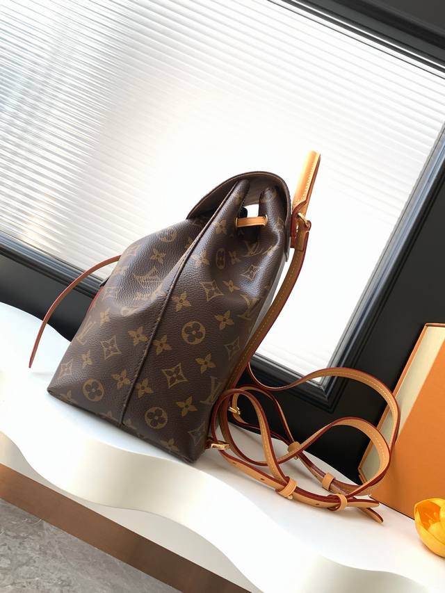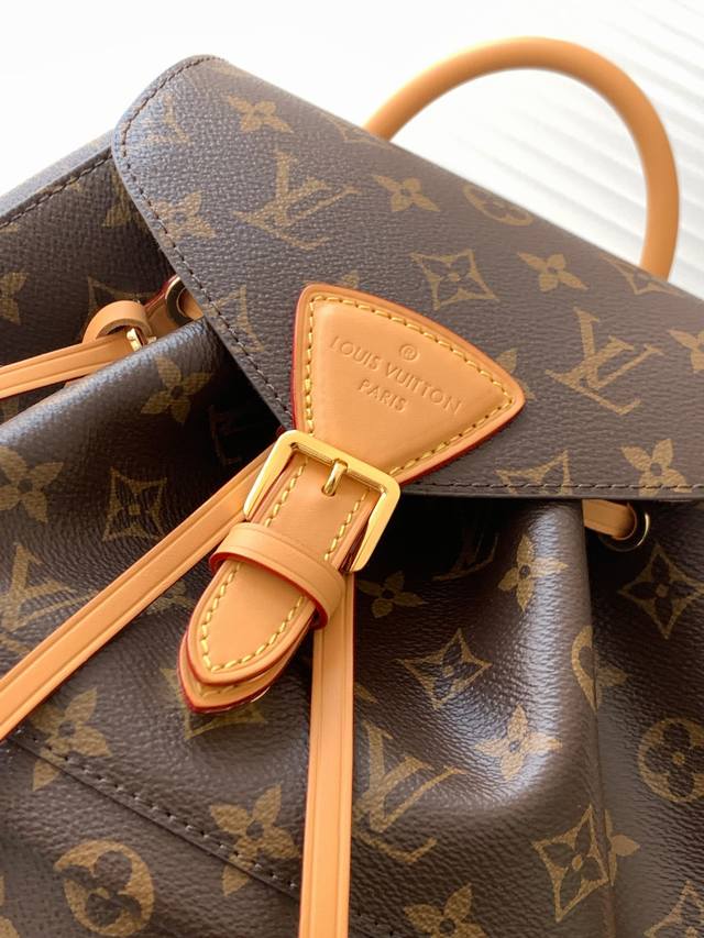 The new Montsouris small backpack is made of Monogram canvas and cowhide, with buckles and leather drawstrings from the brand archives. Ample interior space and zippered outer pockets add functionality, and the top handle and detachable and adjustable leather shoulder strap allow for a variety of carrying methods.