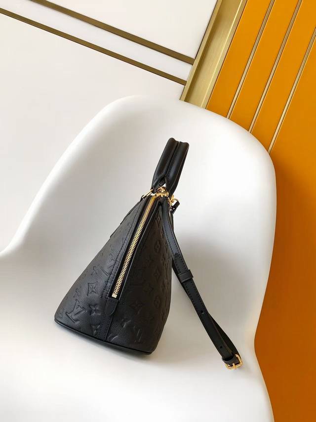 Dynamic 163C01 Chip M26489 Black Embossed Top-Tier Original Individual Background Real Shot. This Alma pm handbag embodies Parisian elegance in smooth and supple Monogram Empreinte leather. Its structured shape is accented with a classic key pouch and padlock, paying homage to the 1934 Square handbag design. Striking metal hardware completes the sophisticated look, and it can be carried in multiple ways. 30.5 x 21 x 14.5 cm (Length x Height x Width) Made of cowhide leather with cowhide trim. Fabric lining. Metal hardware. Zipper closure with padlock and key. Key pouch. Interior slip pocket. Metal studs on the bottom. Holds a smartphone, earphones, short wallet, and sunglasses. Shoulder strap: Detachable and adjustable. Strap half-length: 50.0 cm. Strap half-length adjustable to: 62.0 cm. Handles: Double handles.