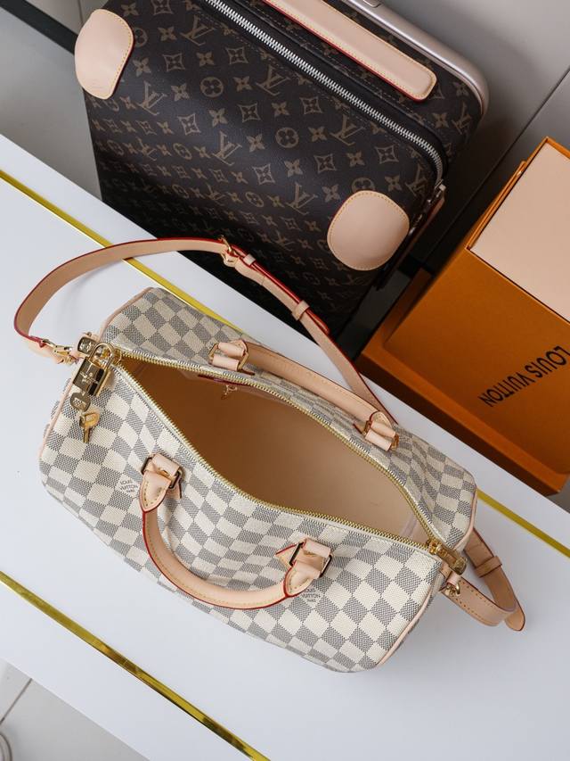 Dynamic 163C01 Chip M40592 White Checkered 30 New Version Hardware Top-Tier Original Single 41112 White Checkered 30 Exclusive Background Real Shot. The Speedy series handbag was originally designed for travelers in the 1930s, its name derived from the rapidly developing subway system of the time. This Speedy Bandouli