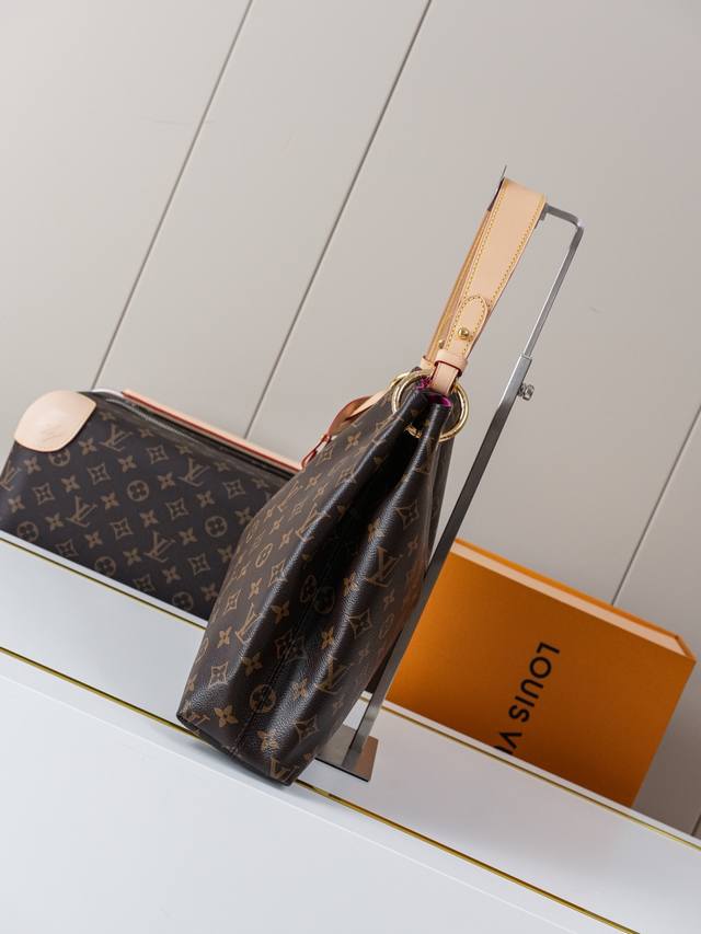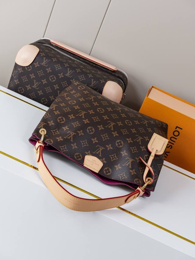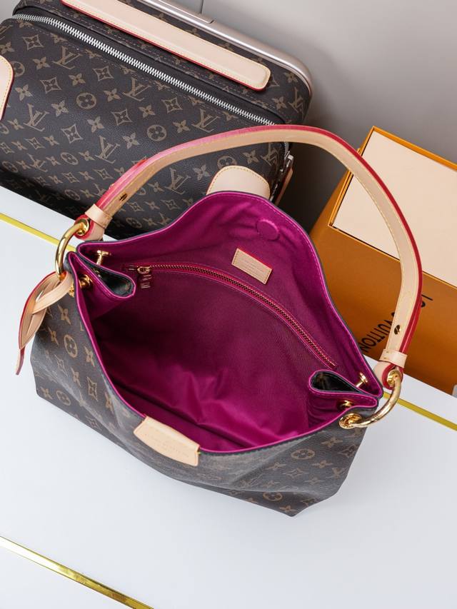 Dynamic 163C01 chip M43700 Monogram Rose Red Small Size Top Original Single M43701 Monogram Rose Red Exclusive Background Real Shot The Graceful PM Hobo in classic Monogram canvas is a lightweight, spacious bag perfect for everyday carry. Natural cowhide details and gold hardware add a sophisticated touch. The body-friendly design combines with soft, flat handles for comfortable shoulder wear. A magnetic closure and zippered interior pocket keep items secure.