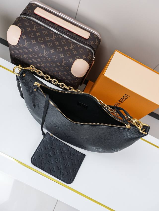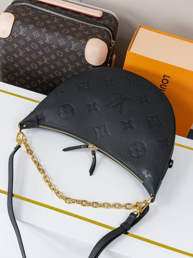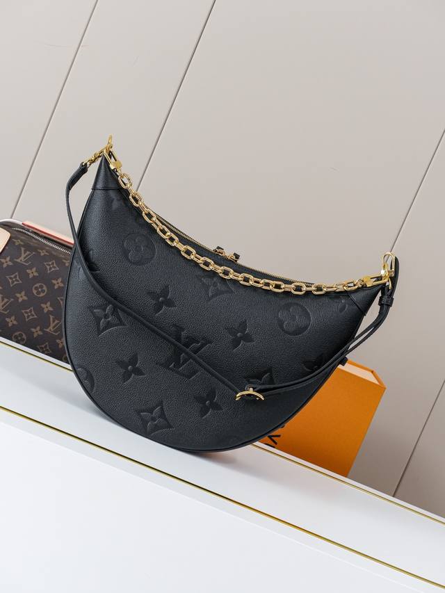 Dynamic 163C01 Chip M46725 Black Pressure Top Quality Original Single Home Background Actual Shot. This Loop Hobo handbag is crafted from soft Monogram Empreinte leather in a trendy half-moon shape that conforms to the body, offering ample space and making it an ideal choice for urban travel. The detachable zippered interior pocket can also be used separately, while the dazzling chain and detachable shoulder strap offer versatile carrying options.