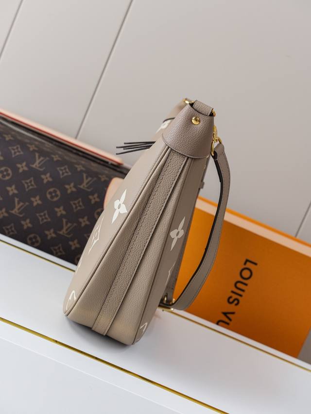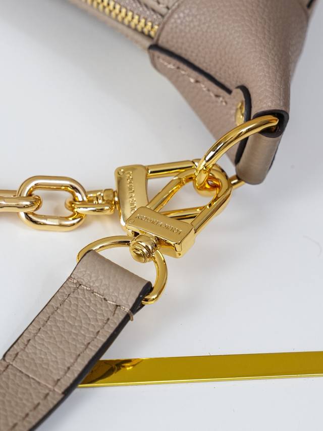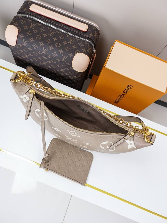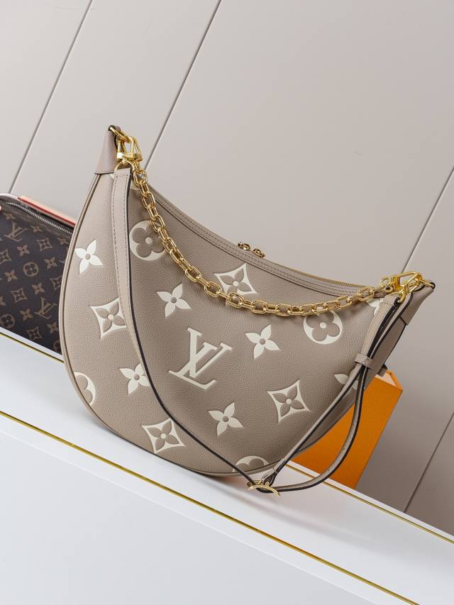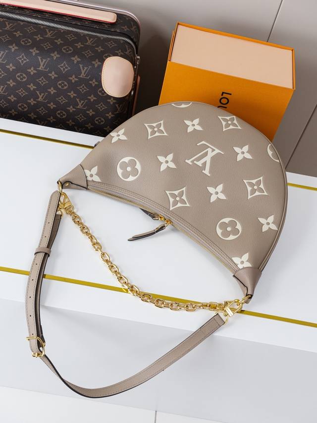 Dynamic 163C01 Chip M46738 Elephant Gray Top Quality Original Single Home Background Actual Photo. This Loop Hobo handbag is crafted from soft Monogram Empreinte leather in a trendy half-moon shape that conforms to the body, offering ample space and making it an ideal choice for urban travel. The detachable zippered interior pocket can also be used separately, while the dazzling chain and detachable shoulder strap offer versatile carrying options.