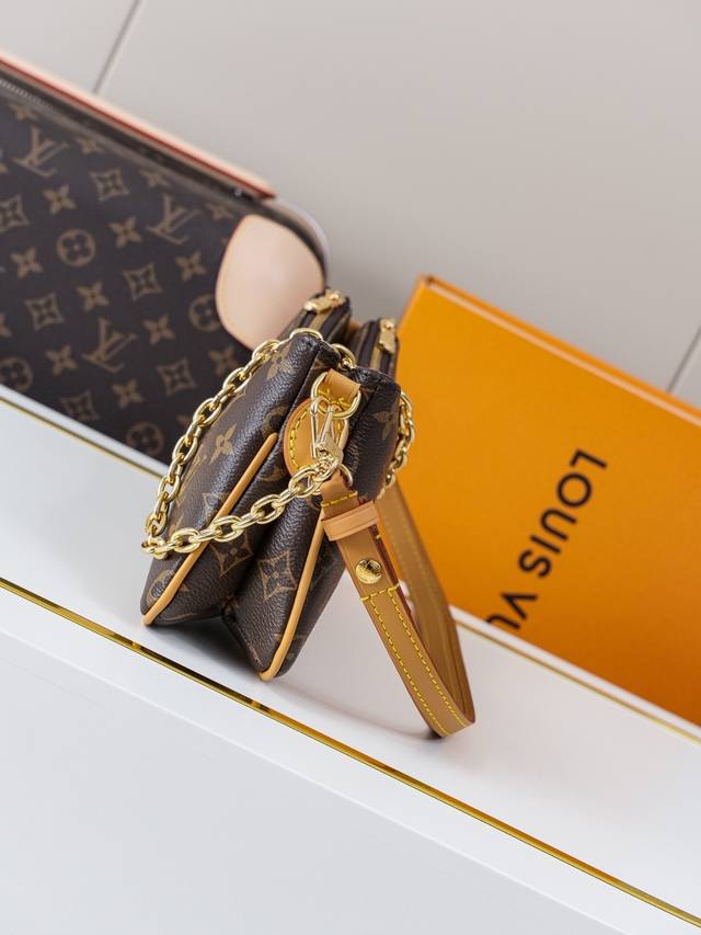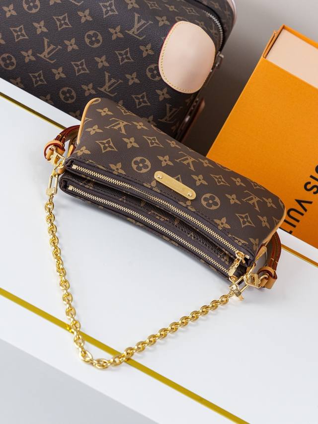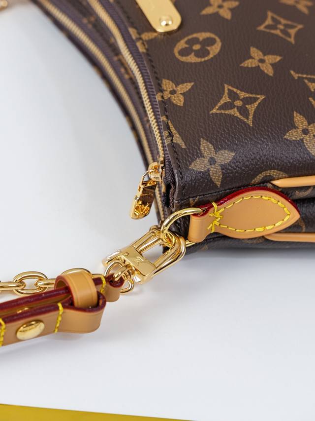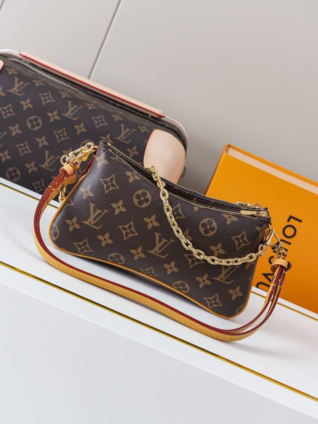 Dynamic 163C01 chip M83008 monogram, top-quality original, real-life photos. The Liv Pochette handbag is crafted from Monogram canvas and can be comfortably carried under the arm. A double zipper closure and a striking nameplate add finishing touches. The elegant chain and adjustable cowhide shoulder strap are both detachable. Dimensions: 24.5 x 13.5 x 6.5 cm (L x H x W)