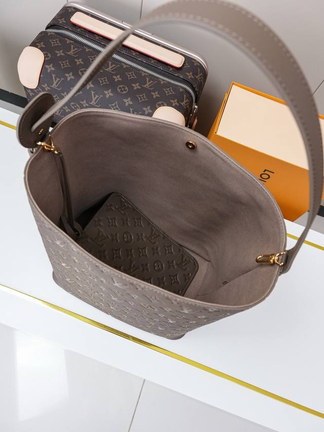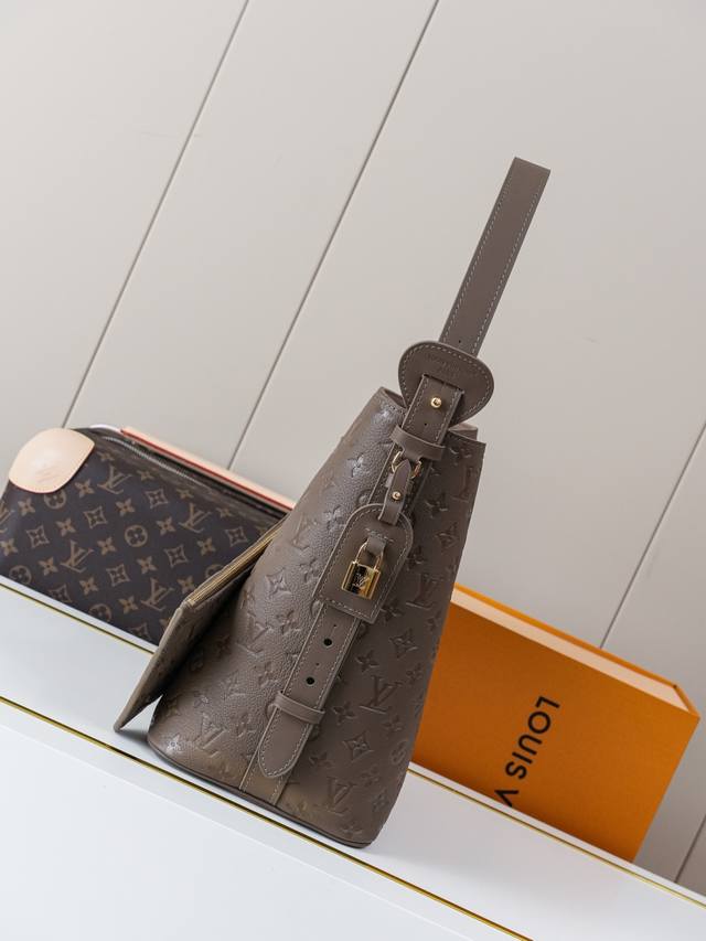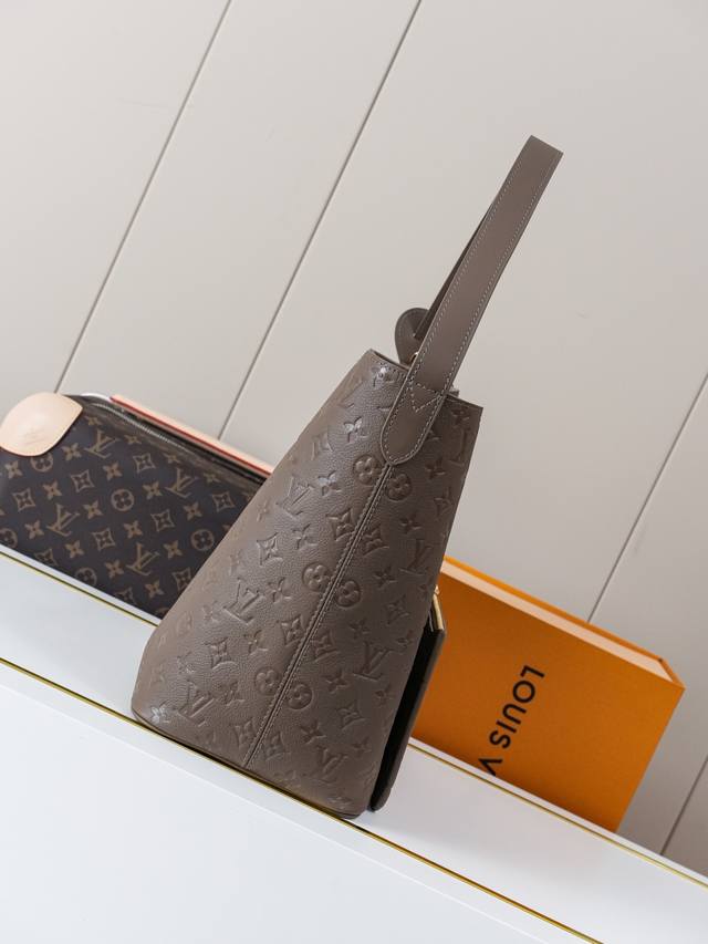 Dynamic chip M25823 Gray/Coffee, top-quality original, real-life photo. This All-In bag features Monogram leather with lustrous hardware, and the signature padlock and nameplate accentuate its classic style. The adjustable shoulder strap, in keeping with the brand's trunk-making heritage, features a leather strap for crossbody and shoulder carry options. The foldable design allows for flexible storage and expansion, making it an ideal everyday carry. 30.0 x 25.0 x 17.0 cm (L x H x W)