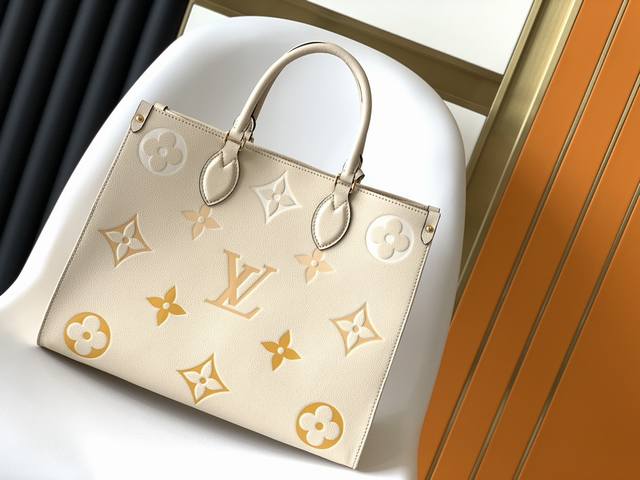 Dynamic Chip M45717 Vanilla Yellow M45718 Sky Blue M45719 Pink This Onthego medium tote bag features the Monogram pattern printed and then embossed onto soft grained cowhide. Its spacious interior can accommodate a laptop and other office supplies. M45654, full leather embossed large floral woven round tag gradient silkscreened diaper bag small size Oo handshake]handshake] Long and short handles for easy hand or shoulder carrying. Ddd Dimensions: 34.0 X 26.0 X 13.0 cm DDD