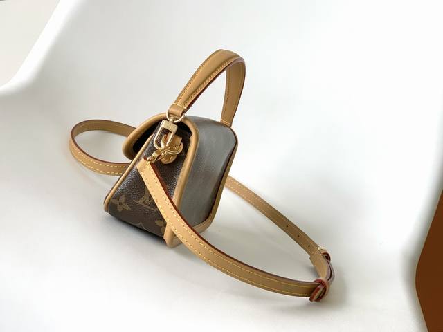 Dynamic Chip Nano Diane Handbag (Model: M83298 M83566 Baby Monogram). Upgraded quality with quilted fabric and a synchronized electronic code chip. Made with Monogram Empreinte leather, this bag encapsulates the classic Diane handbag design, replicating the rounded flap and belt closure details. Ample space for a phone and daily essentials, with a detachable handle and adjustable shoulder strap for flexible carrying, suitable for both day and night. Dimensions: 19*10.5*6 cm.