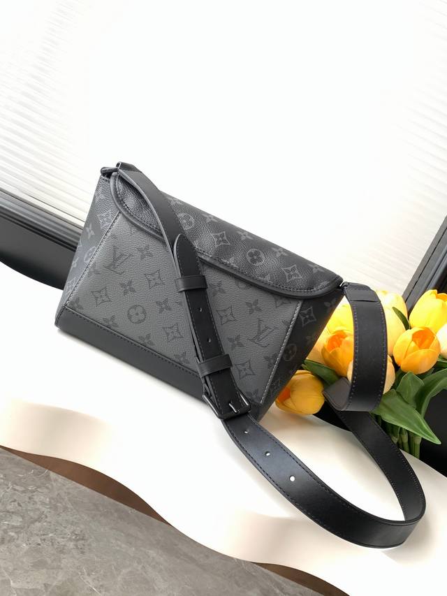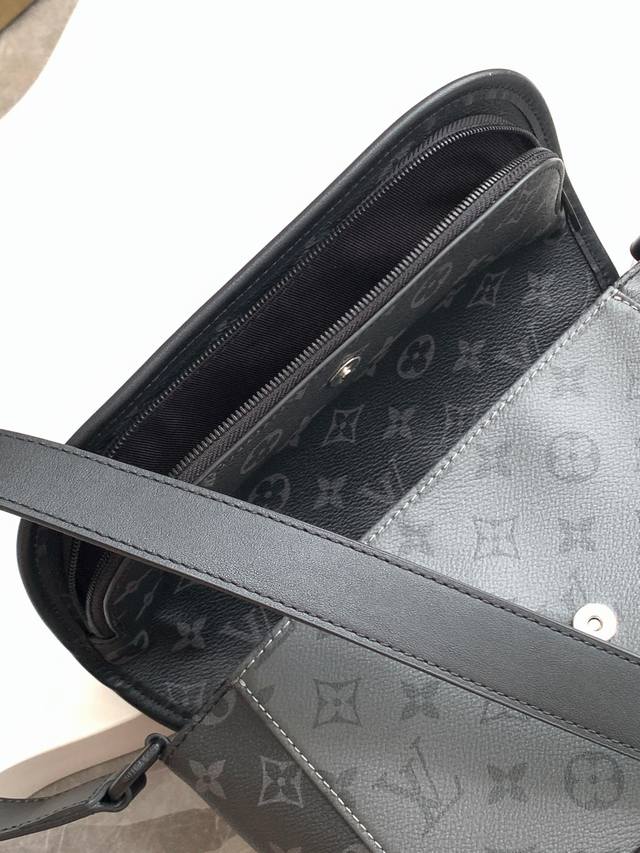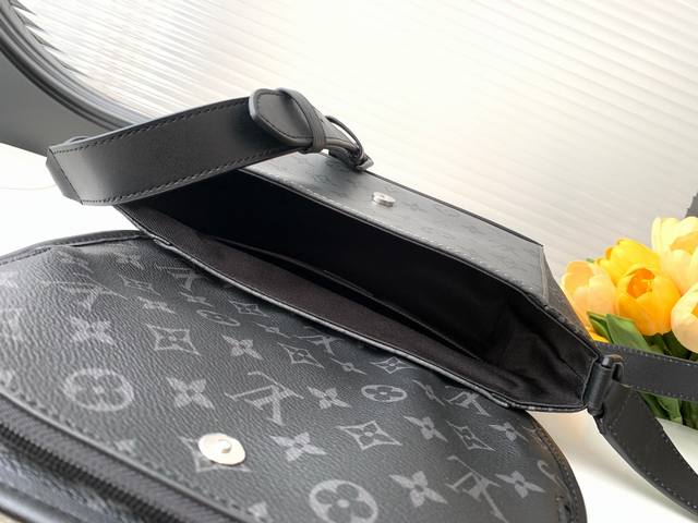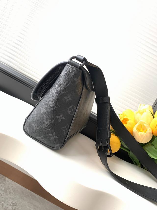 M12681 This Pulse messenger bag is made of Monogram Eclipse canvas with a delicate structure, and the outer pocket on the flap is matched with a cord zipper head. The magnetic buckle closure is convenient for taking and putting items, and the side ring is cleverly used to adjust the leather shoulder strap, which is suitable for shoulder or crossbody. Size: 26.6