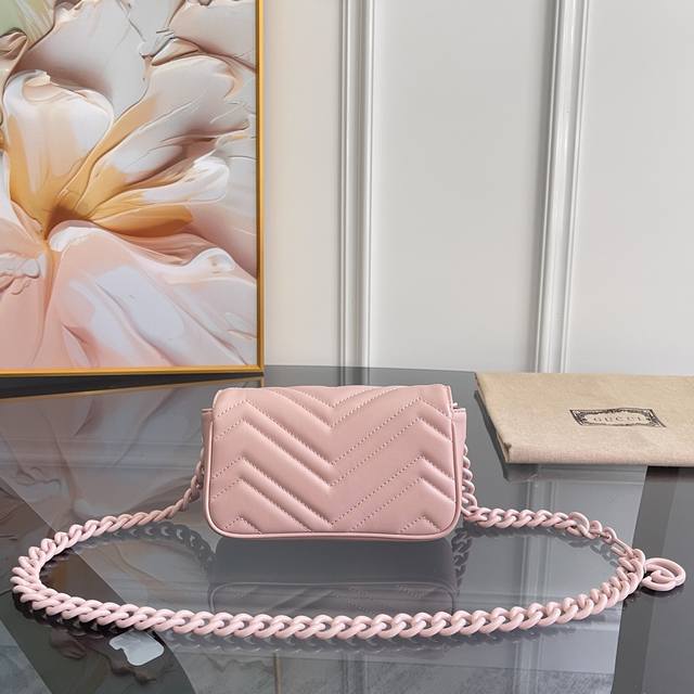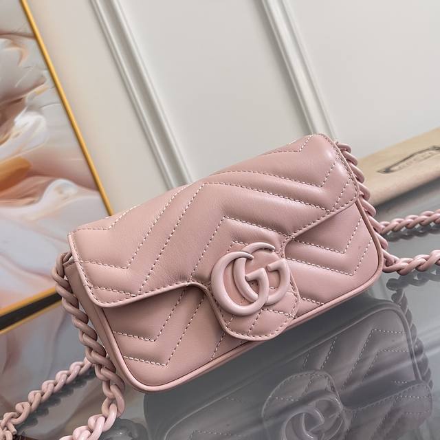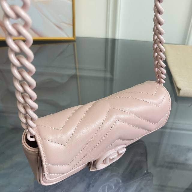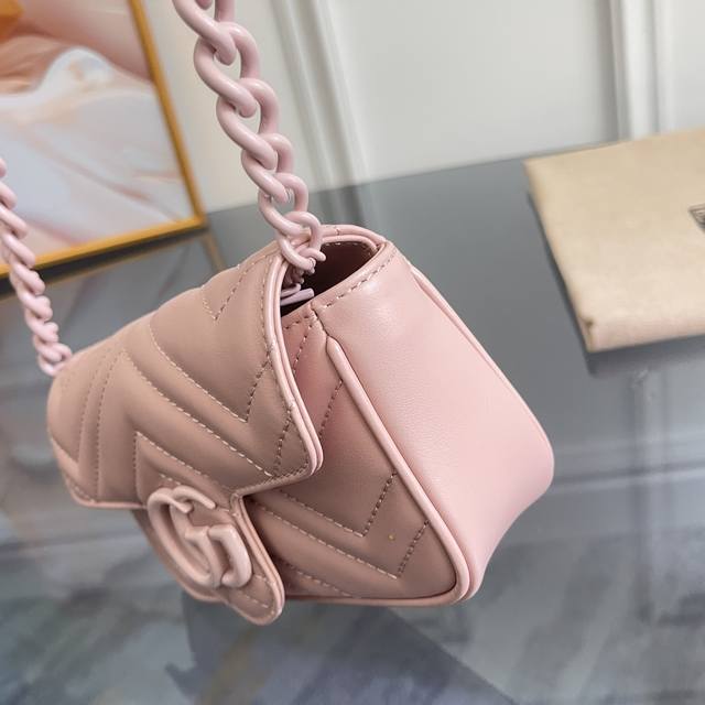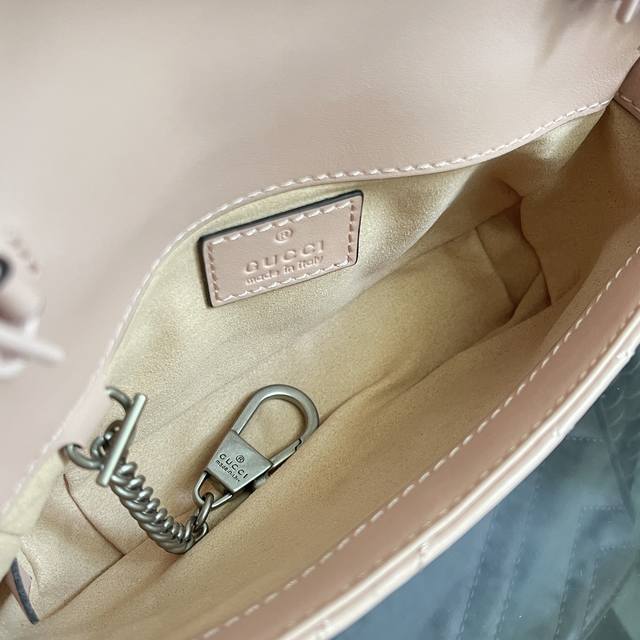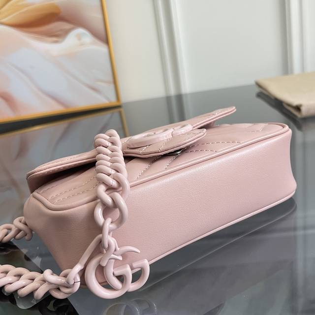 Exclusive background, real product photos, top-quality original item, style number: 699757, pink leather, size 16.5 x 10.5 mm.