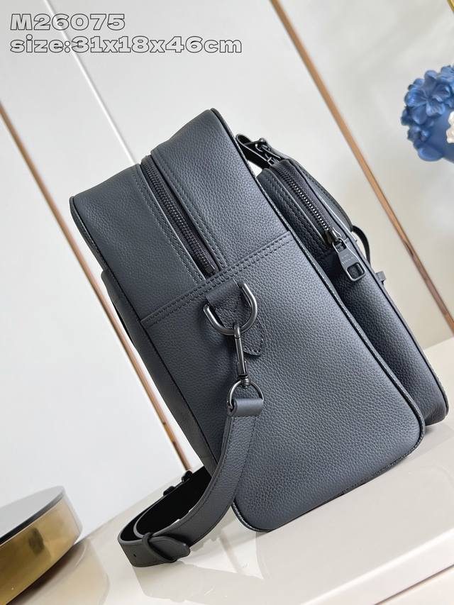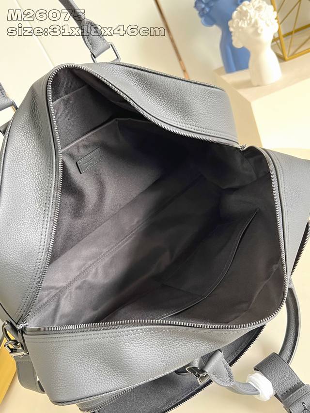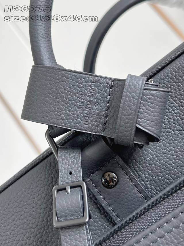 Exclusive photo M26075. This Weekender Bag features waxed cowhide leather, a tonal lining, and gleaming hardware. Perfectly sized to fit on top of a Horizon trolley, it makes business travel effortless and comfortable. A spacious front zippered pocket expands the main compartment, while a top handle and removable, adjustable shoulder strap provide versatile carrying options. 31 x 18 x 46 cm (H x W x L) (