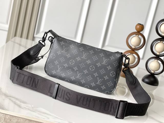 Exclusive photos of the chip-changing version (M11741). This Pochette Accessoire XL handbag is crafted from Monogram Eclipse coated canvas, reinterpreting a classic 1990s design with a dashing touch. The ample zippered main compartment and interior pockets provide organized storage, while designer branding and hardware complete the sophisticated details. A detachable and adjustable fabric shoulder strap allows for shoulder or crossbody carry. Dimensions: 28