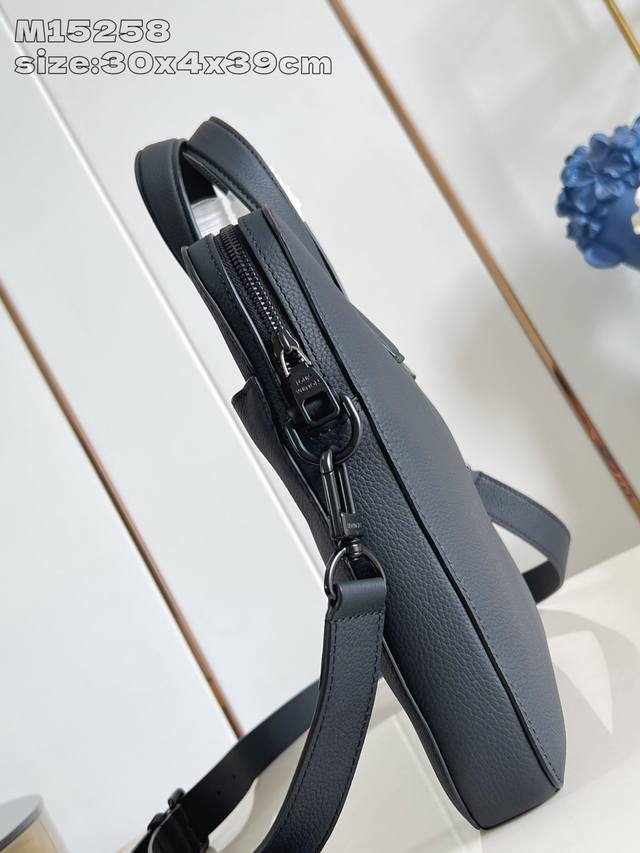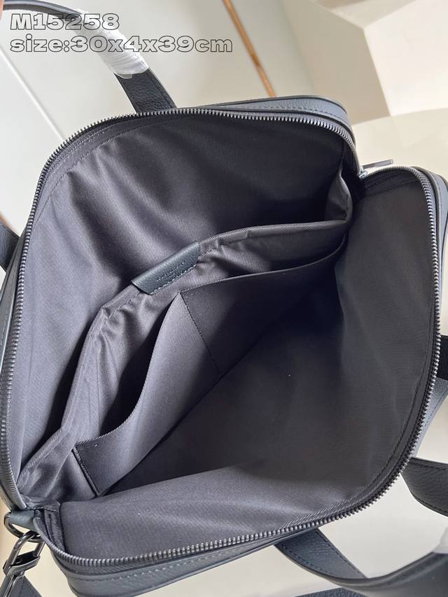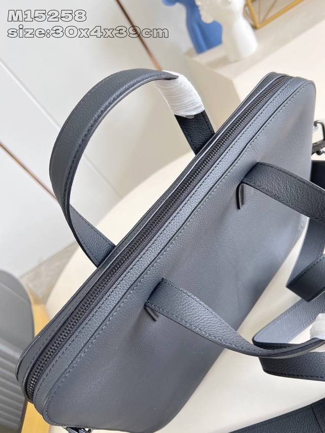 Exclusive photos of the M15258 Gate briefcase, crafted from waxed cowhide leather, boast a soft silhouette and ample space, with a padded interior compartment that securely holds a 16-inch laptop. Its slim design and removable, adjustable shoulder strap allow for easy carry, shoulder, or crossbody. 30 x 4 x 39.5 cm (H x W x D)