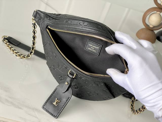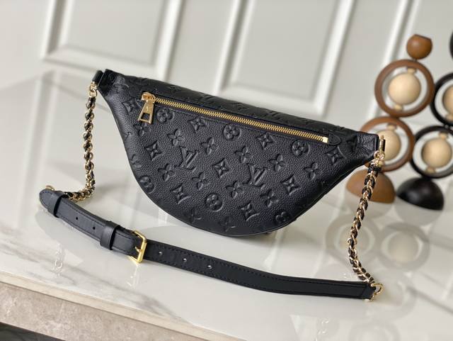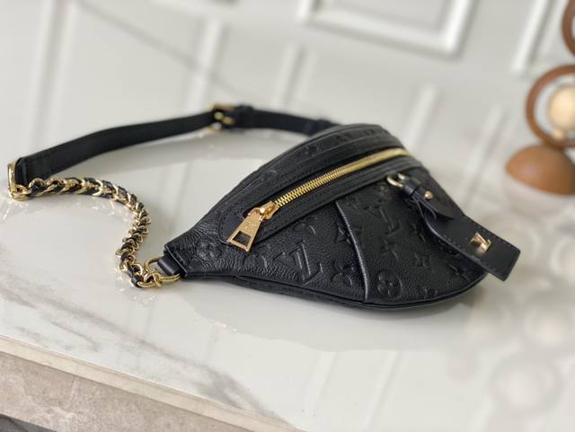 This distinctive High Rise waist bag is reinterpreted this season in iconic Monogram Empreinte leather. Like the original design, this PM style is practical, with an adjustable shoulder strap and is large enough to hold daily necessities. The waist bag is embellished with gold hardware, and the detachable decorative luggage tag pays tribute to the brand's trunk-making tradition, and can be carried cross-body or used as a belt.