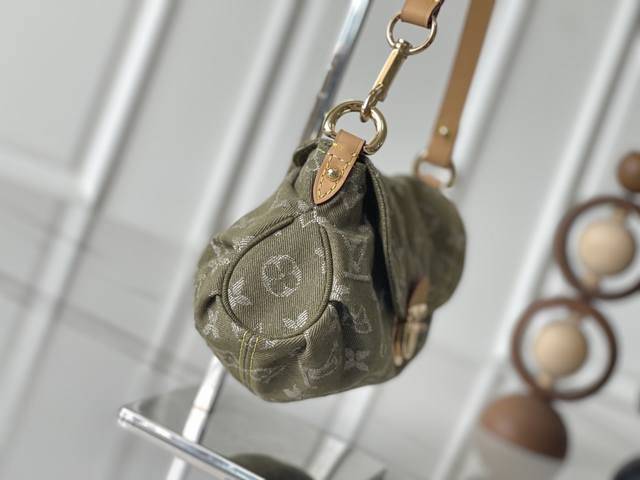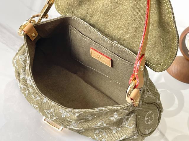 Exclusive real shot of the top original M95217 grass green denim underarm bag Vintage denim shoulder bag Vintage out-of-print denim handbag, a must-have fashion item for summer. Denim elements are timeless, and no matter how you match them, they are super stylish, invincible and fashionable 26X15X9Cm