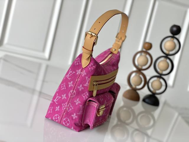 Exclusive real shot of the variable code chip version. This M95212 Vintage denim messenger bag is a limited edition, made of denim canvas and soft suede lining. Two snap-lock flaps on the front, small pockets, zipper closure, and adjustable shoulder strap for convenience and practicality. Size: 30X22X13cm