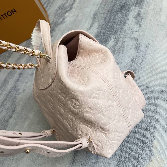 Exclusively customized, real photos of premium originals (M47072 black, M47106 cream white, M47074 pink). This Backup backpack is crafted from Monogram Empreinte cowhide leather with a subtle Monogram embossing. A detachable and adjustable shoulder strap allows for single or double shoulder carry, while a top handle and braided chain allow for hand or crossbody carry. Dimensions: 20.0 x 22.0 x 14.0 cm (Length x Height x Width) (