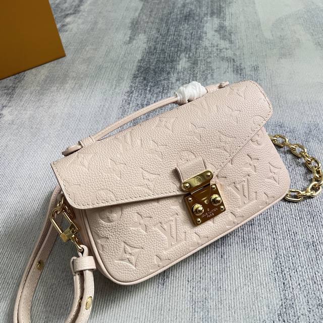 ), M46595 (black), M22942 (beige), M23081 (apricot), M23940 (purple print), M46596 (black print), M12735 (brown print), M47045 (pink). This top-tier, original Pochette M