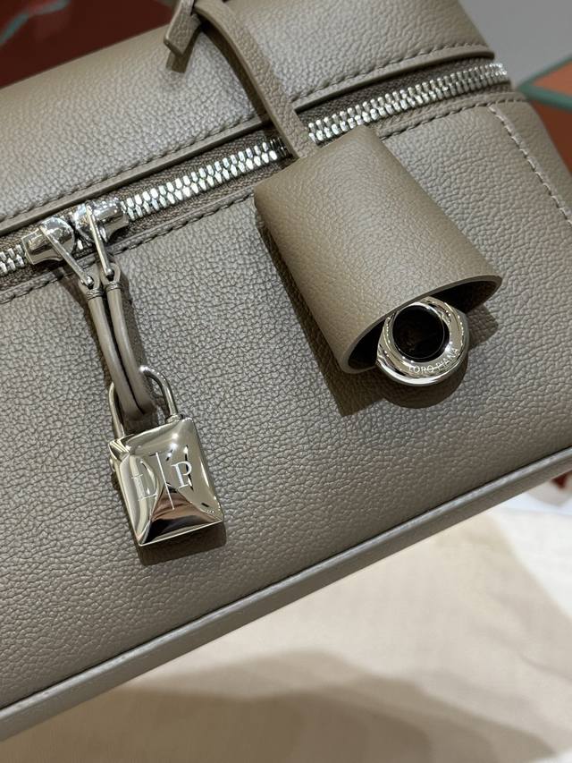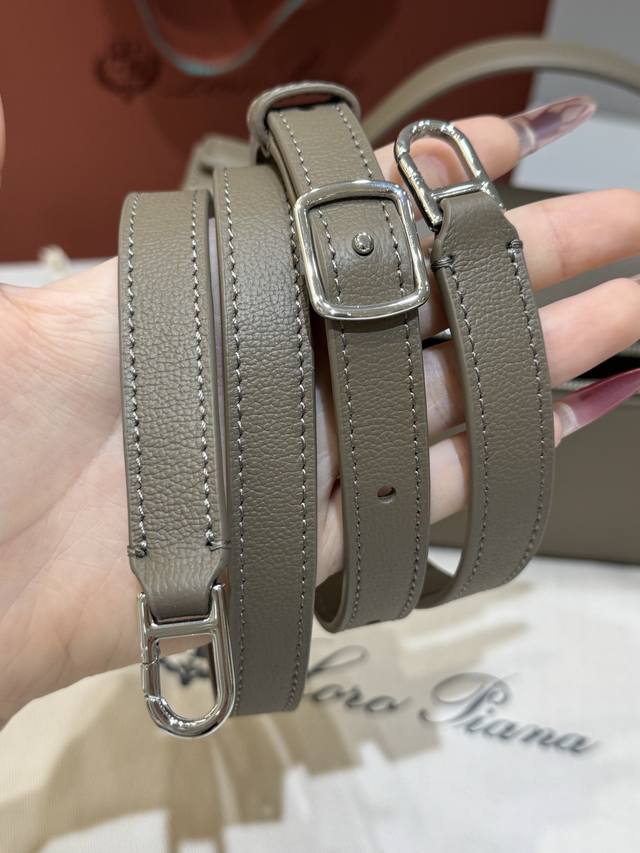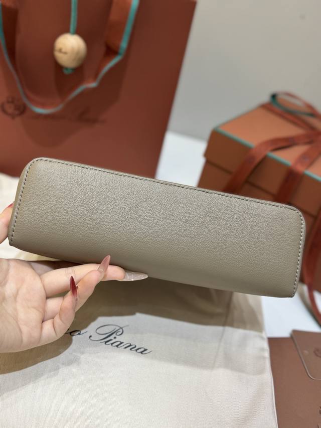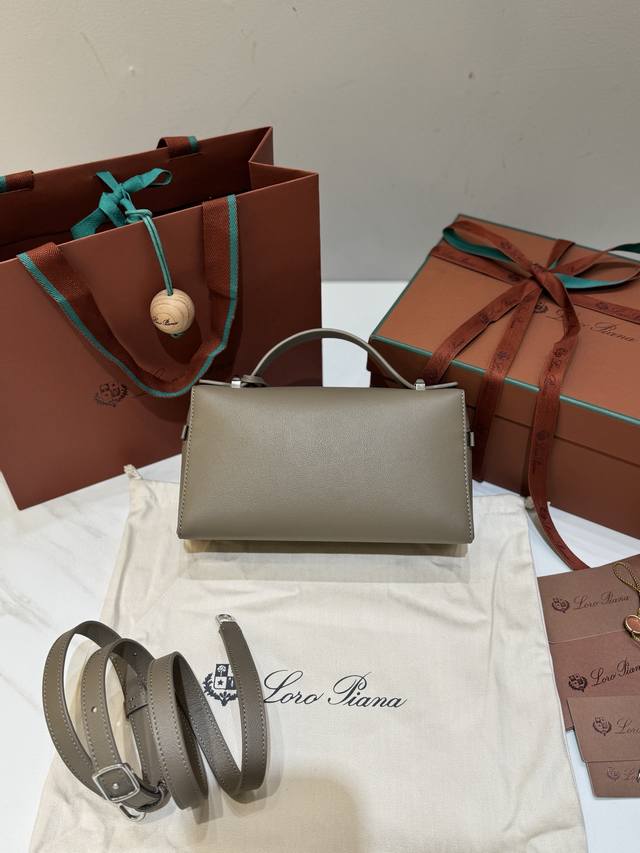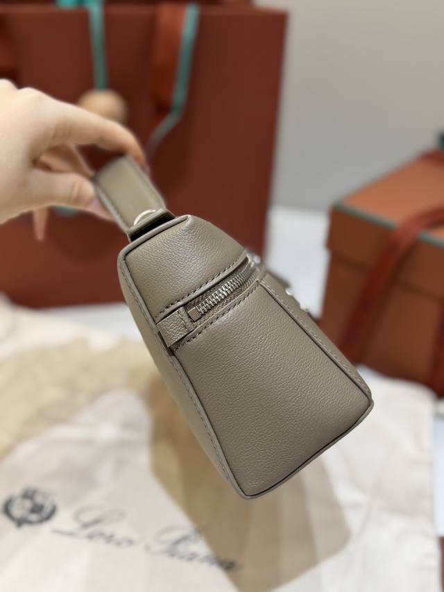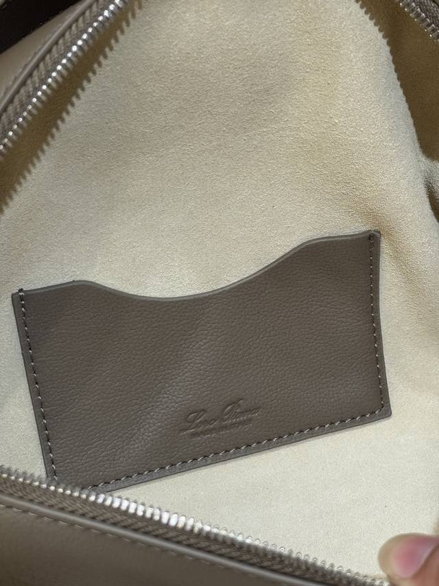 is carefully crafted from Saddle Leather cowhide and decorated with intricate and exquisite visible stitching. It can be carried by hand or crossbody. The double zipper closure is hung with Loropiana's iconic charm and is paired with an exquisite leather keychain, a detachable and adjustable shoulder strap, a two-way zipper closure, and a charm. The interior leather card slot, leather keychain, suede lining, and metal hardware dimensions: 23X12X cm. Handle height: 5 cm. Shoulder strap length: 46-58 cm