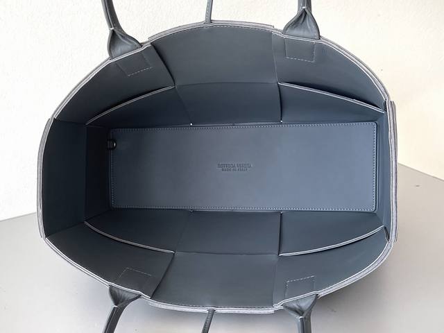 Extra Large Rectangular Tote Bag DDD Featuring traditional woven elements, this Intrecciato woven lambskin two-tone leather tote bag includes a small card holder and an internal buckle. The entire bag is hand-woven from lambskin. DDD Size: 38*25*14Cm Large DDD Model: 609175 DDD Color: Gray DDD
