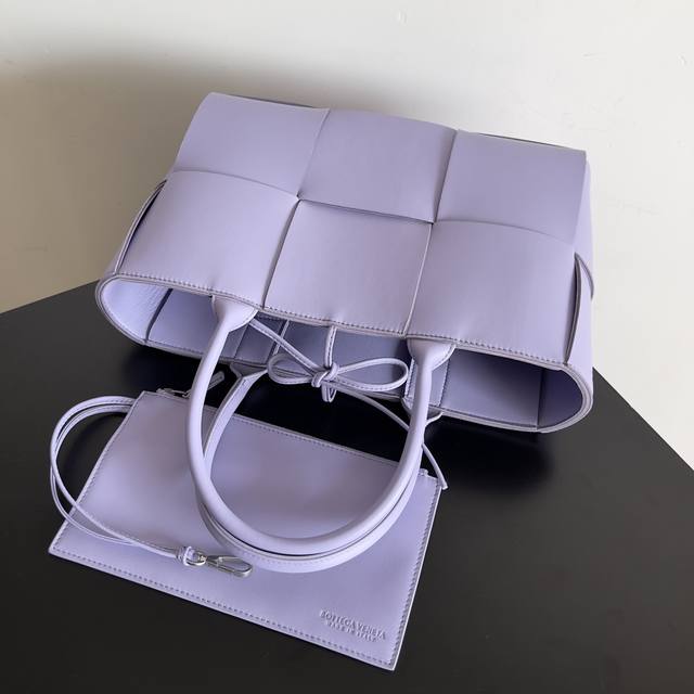 Extra Large Rectangular Tote Bag DDD Traditional woven elements, Intrecciato woven imported lambskin tote bag, with a small card holder inside and an internal buckle. The entire bag is handwoven from lambskin. DDD Size: 30*20*11.5Cm DDD Style Number: 652867 DDD Color: Crystal Purple Wisteria DDD