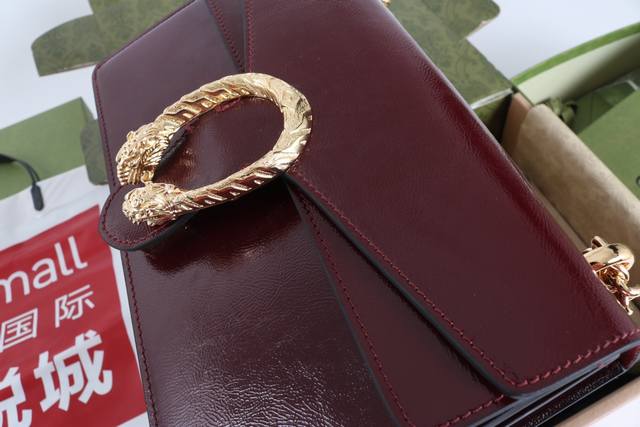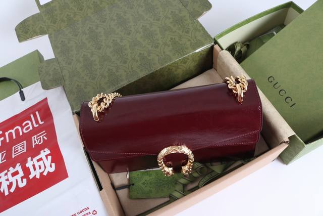 Factory Price: Highest Edition, Original Leather, Premium Original Single, Complete with Designer Packaging. Description: Creative Director Sabato De Sarno reimagines the classic Dionysus series with a large-size shoulder bag. This innovative creation is crafted from sleek black patent leather, featuring a double tiger-head clasp with a flap and an adjustable sliding chain for a modern look.