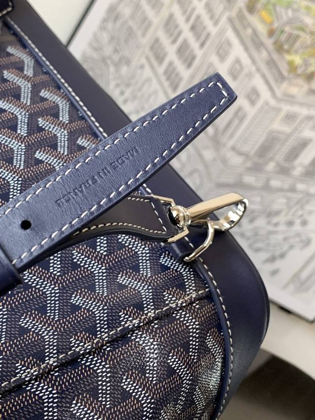 Factory price, highest edition, original leather, top-grade original single, with full counter packaging, dark blue. The Goyard Alpin backpack features an adjustable shoulder strap and a retractable key ring, allowing for different carry styles. Despite its multiple internal and external pockets, it remains lightweight and compact, making it highly practical.
