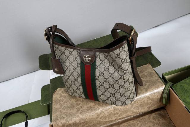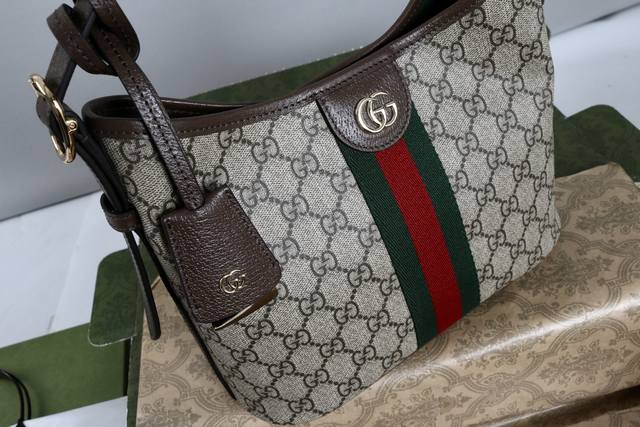 Introduction: Ophidia series presents new silhouettes and functions, with iconic beige and brown color matching, creating soft and innovative bag items. Beige and dark brown Gg canvas