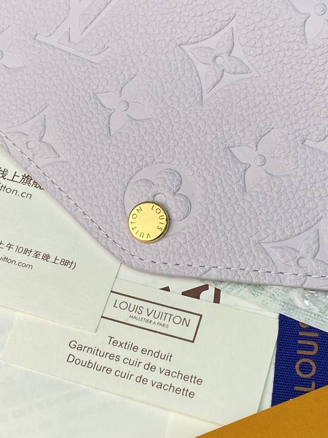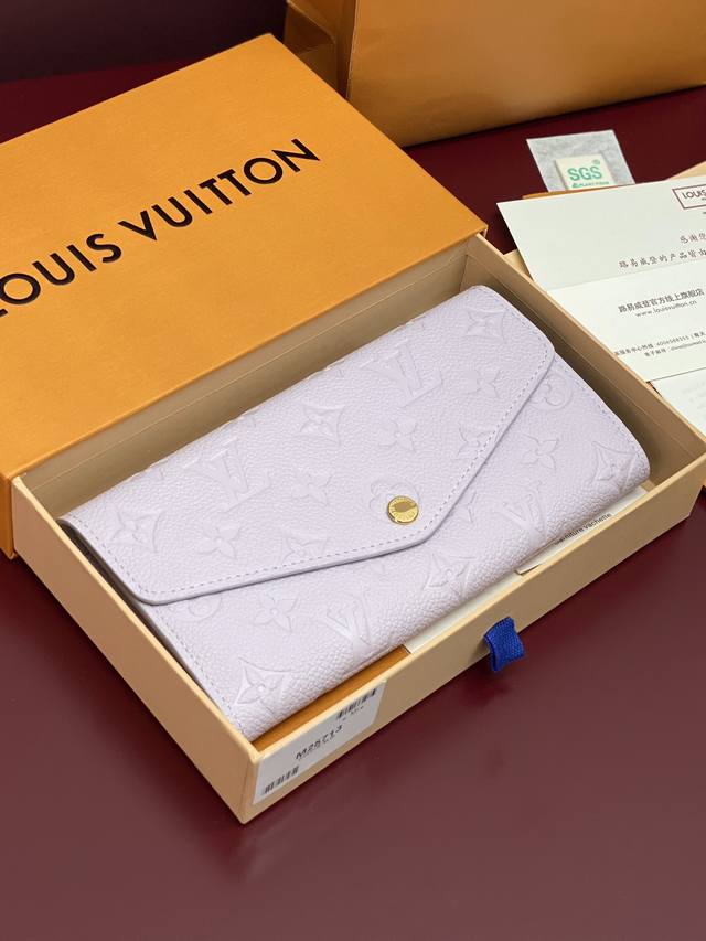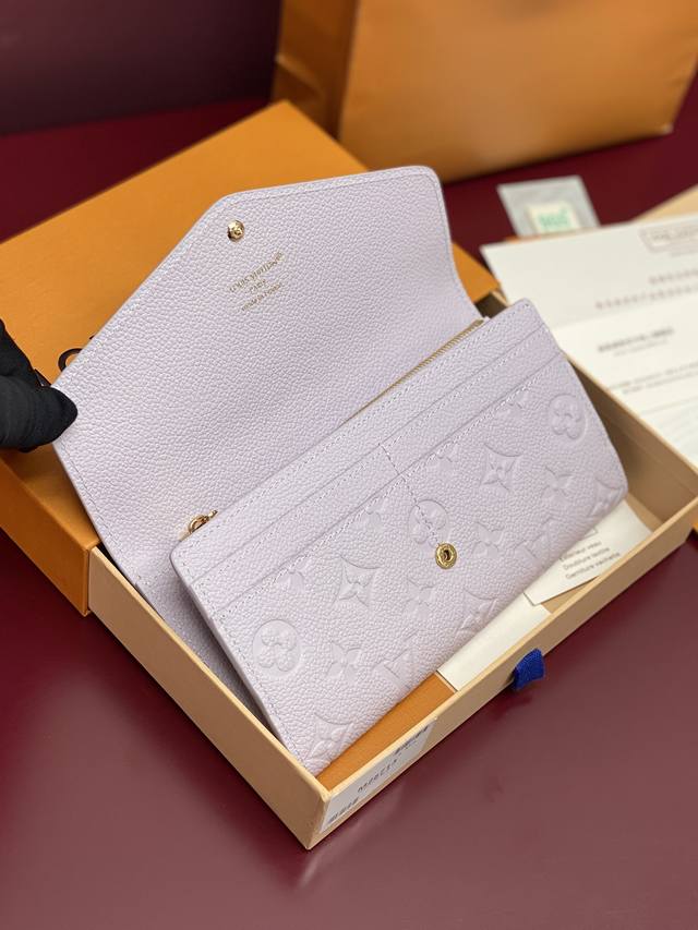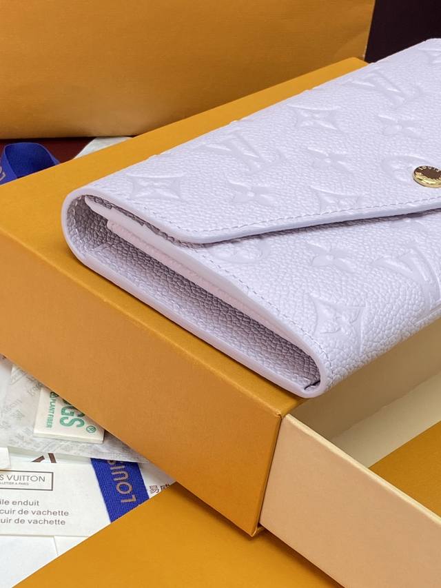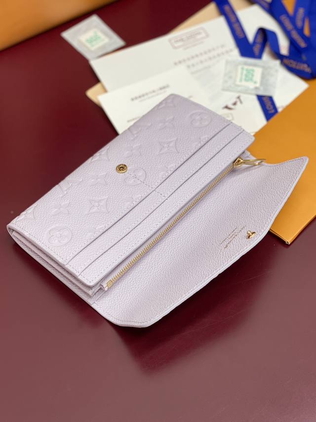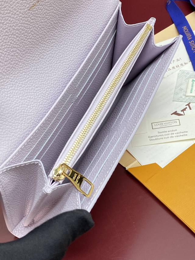 Factory Price: M25713 Mist Purple! Variable Chip! This Sarah wallet features Monogram Empreinte leather embossed with the classic Monogram pattern. It features an envelope-style flap for opening credit cards and a zippered coin pocket. Details: 19 x 10.5 x 2 cm (Length x Height x Width).